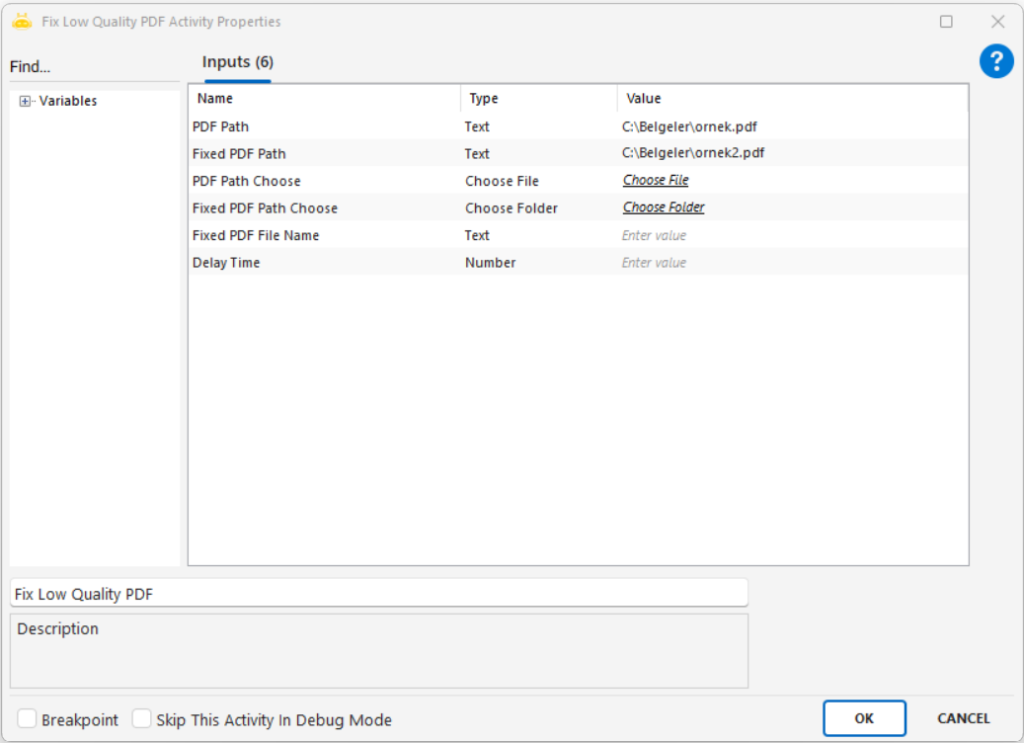 • Fixed PDF Path: Full path where the improved PDF will be saved