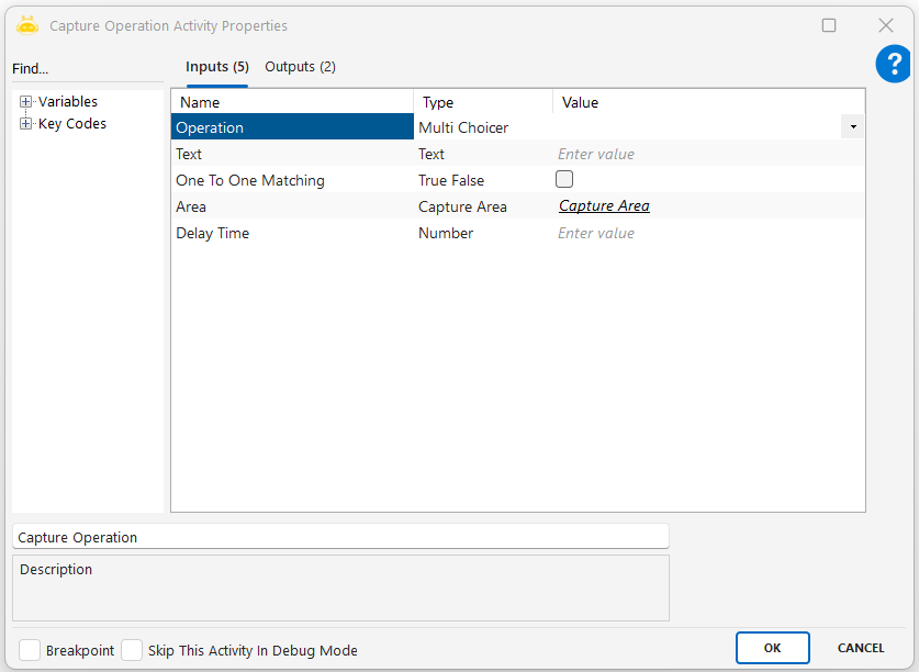 1.Capture Operation aktivitesini otomasyon akışına ekleyin.