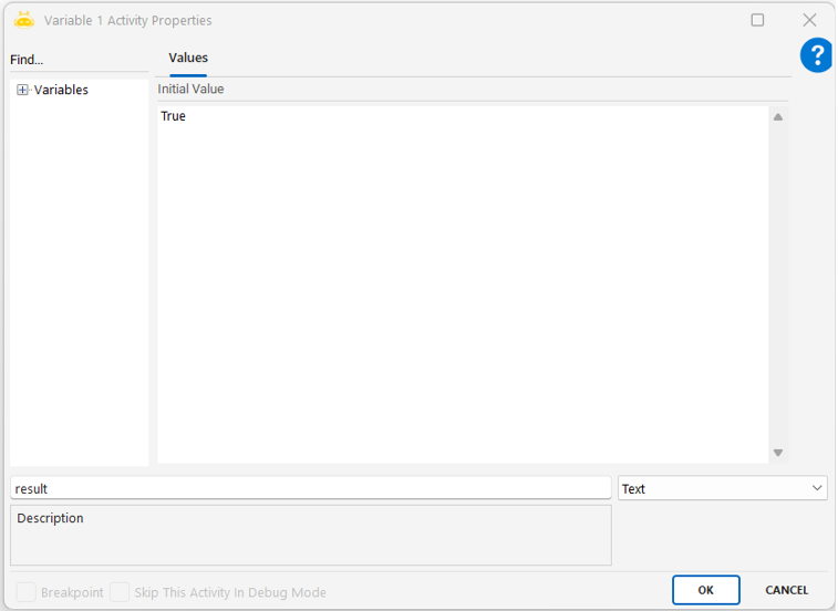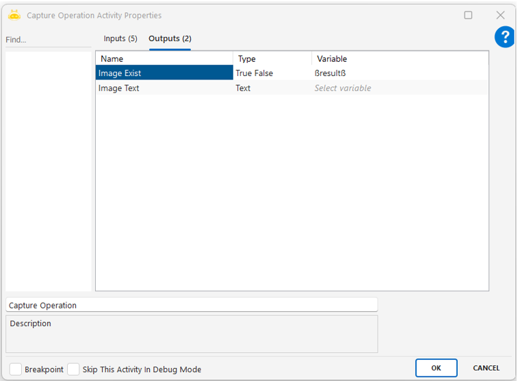 • Eğer imageExist komutu seçtiyseniz, sonuç (“True” veya “False”) bir değişkene aktarılır.