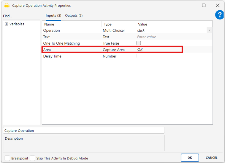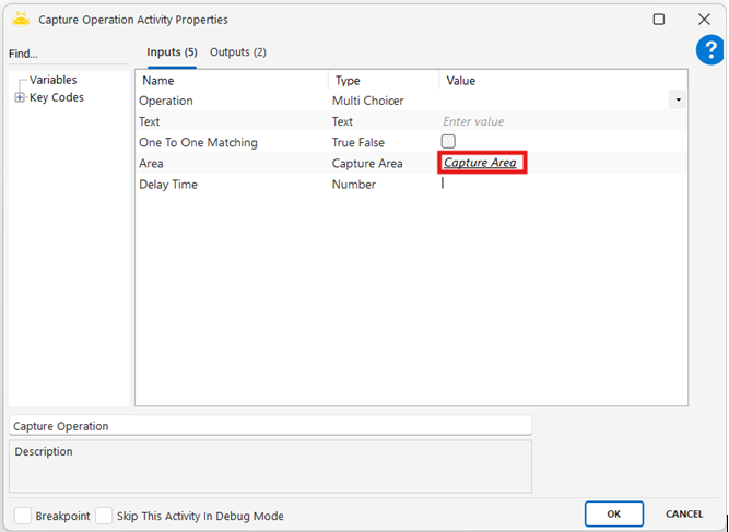 - Area : Görselin yakalanacağı ve işlem uygulanacak ekran bölgesini temsil eder. “Capture Area” başlığı altında tanımlanır.