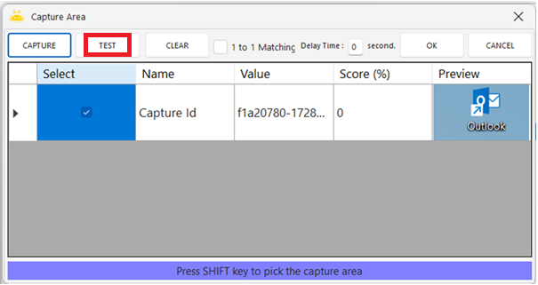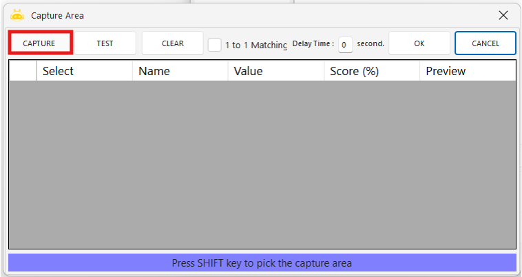 2.”Capture Area” satırına tıklayarak görsel seçim ekranını açın.