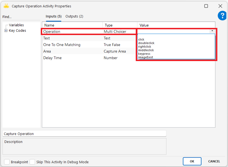 - Operation : Yapılacak işlemi belirtir. Tıklama, çift tıklama, sağ tıklama, orta tıklama, klavye tuşu gönderme veya görsel kontrolü seçenekleri kullanılabilir.