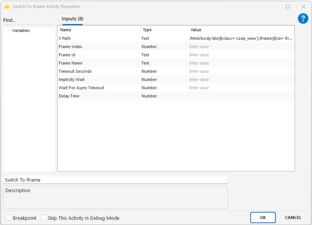 - Frame Index: Sayfada birden fazla iFrame varsa, kaçıncı sıradaki olduğuna göre geçiş yapılmasını sağlar. Sayım sıfırdan başlar.