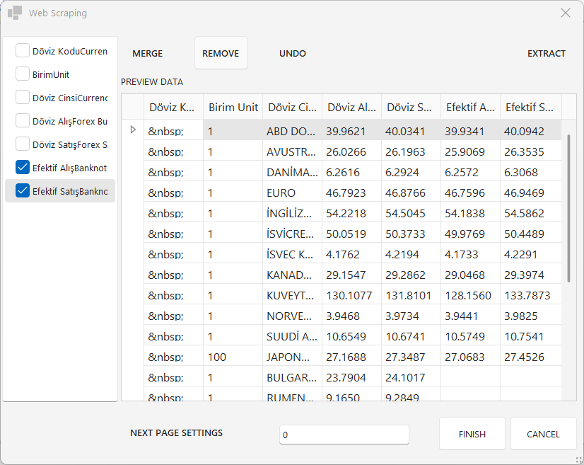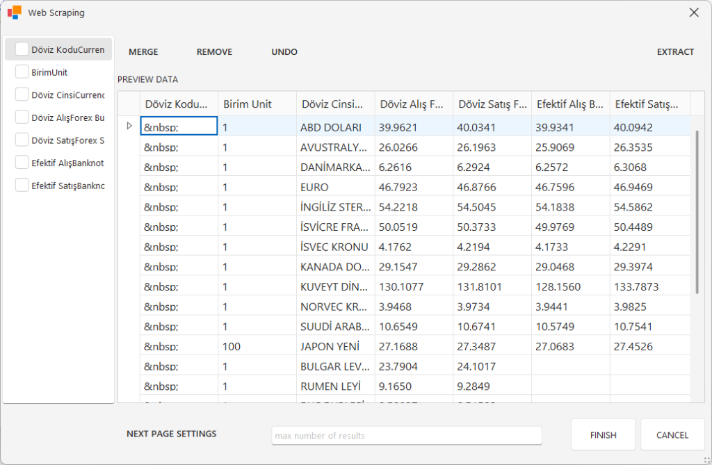 Tüm ayarlamaları yaptıktan sonra “Finish” butonuna tıklayarak Web Scraping sihirbazını kapatabilirsiniz.