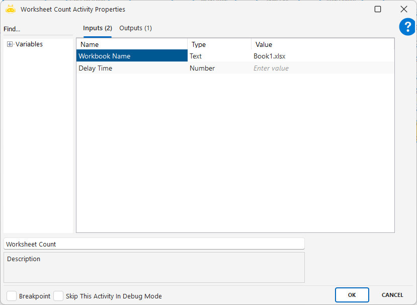 Worksheet Delete aktivitesiyle, Worksheet Name satırına yazdığınız çalışma sayfasını silebilirsiniz.