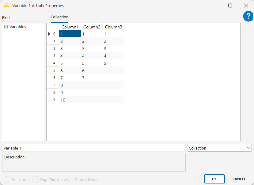 - Variable1: Collection değişkenin adı