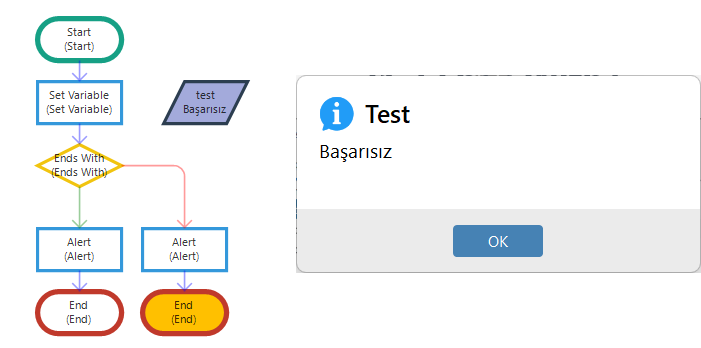 - Second Value: Metnin hangi ifadeyle bitmesi gerektiğini belirten değer.Örnek: “Başarılı”