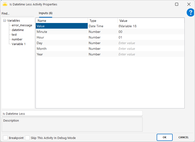 - Second Date : Karşılaştırma yapılacak referans tarih değeridir. Bu sabit olarak yazılabileceği gibi (örneğin “01.09.2020”), başka bir değişkenden de alınabilir.