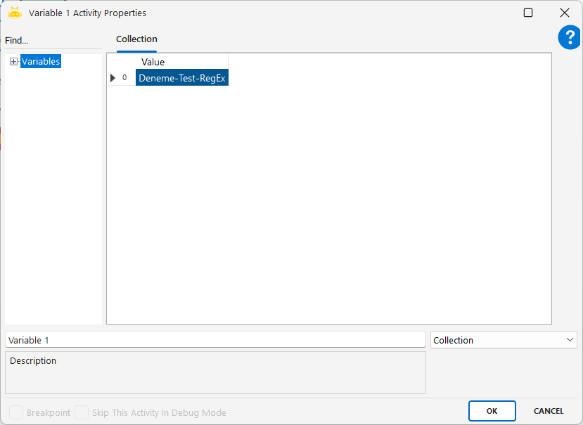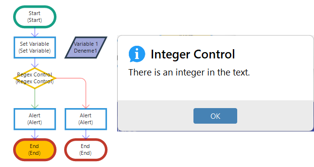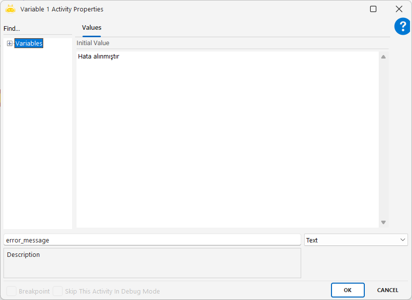 @Variable18 değişkeninde “Hata” kelimesi geçiyorsa aktivite True, geçmiyorsa False sonucunu döndürecektir. Bu sonuç örneğin bir if koşulunda kullanılarak işlemin yönü belirlenebilir.