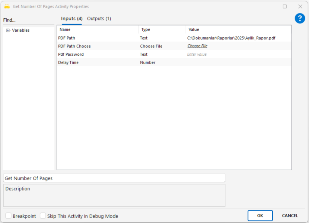 Get Number Of Pages Aktivitesi; Bu aktivite ile bir pdf dosyasındaki sayfa sayısını bulabilirsiniz.
