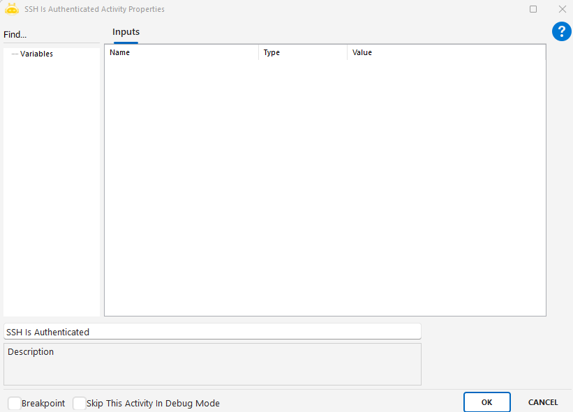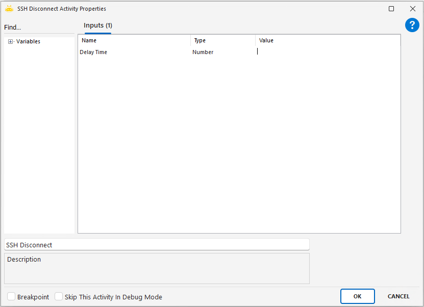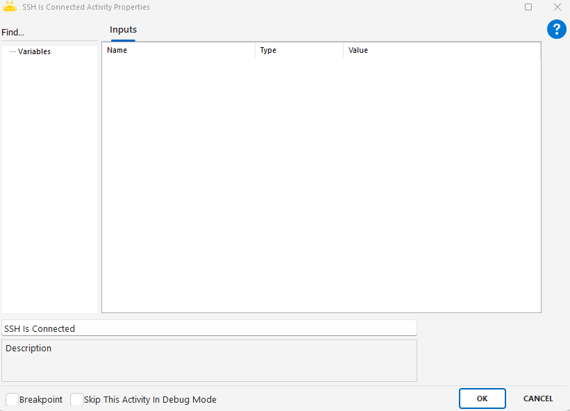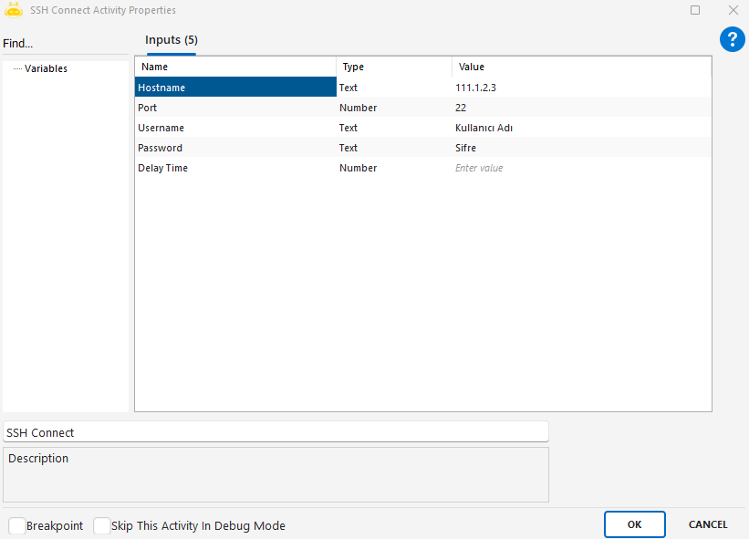 - Eğer öncesinde SSH Connect ile bağlantı kurulmamışsa, bu aktivite çalıştırıldığında etkisiz olur.