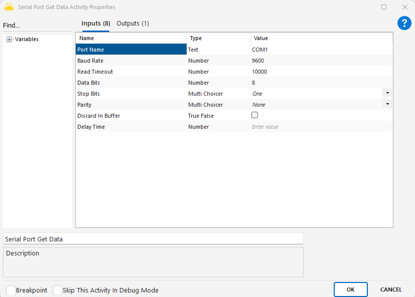 - Delay Time: Aktivite başlamadan önce bekleme süresi (milisaniye)