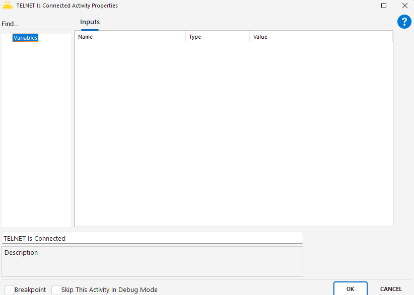TELNET Is Connected aktivitesi, TELNET bağlantısının yapılıp yapılmadığını kontrol eder.